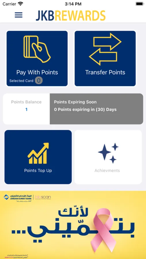 JKBRewards gives you the ability to redeem reward points earned through debit and credit card transactions, view your points’ balance, provide a statement with earned and redeemed points, and viewpoints that are about to expire.