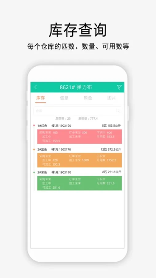 932布行企管家:针对纺织行业研发的管理软件,轻松查询企业的:订单、纱线、下织、坯布、成品、库存、采购、加工、销售、财务等情况。