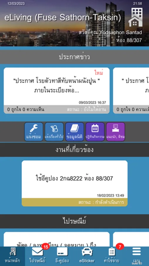 eLiving is application for residence and condominium. The application has just been started at fuse sathorn-taksin condominium. This application is used for the specific resident.