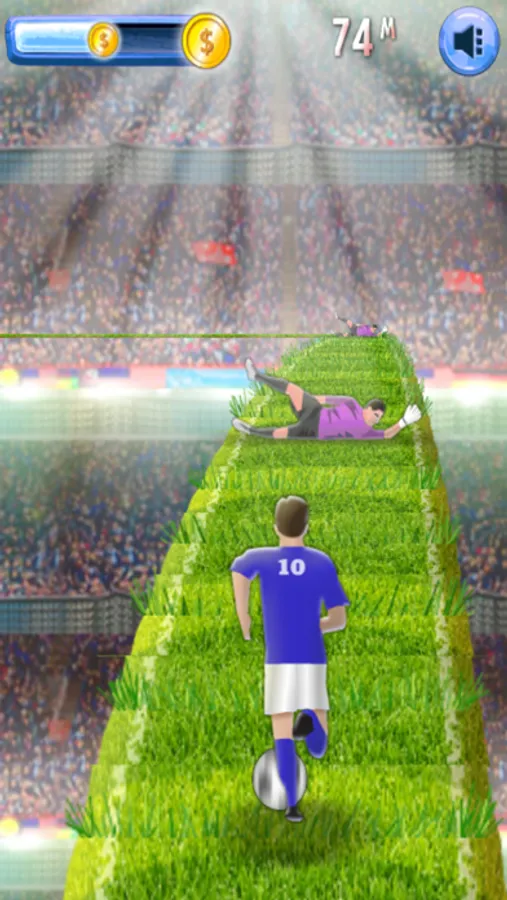 "Soccer Runner Pro" is a very fun agile game. In the game, we need to help players to run away obstacles from everywhere and get gold coins on the way. The gold coins you get can be used to improve your ability and make you run farther.