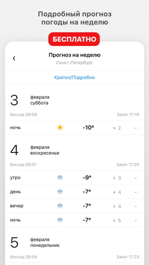 Удобное приложение с точным прогнозом погоды на ближайшую неделю от Погода1