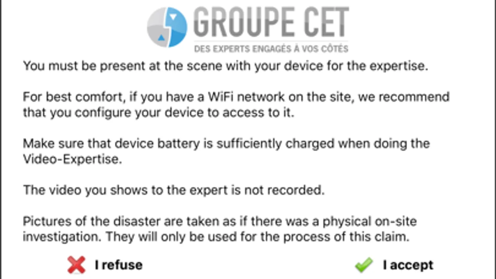 CET Visio est une solution permettant de projeter son expertise métier sur le terrain, sans déplacement. Elle transforme tout smartphone et/ou tablette en outil terrain permettant toute expertise à distance depuis un poste informatique :