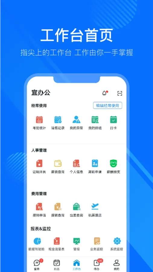 宜办公是宜信公司专门为企业定制的移动协同办公平台,该平台整合了内外勤管理、报表&监控、费用管理、人事管理、员工福利及办公工具等常用应用。做到了随时随地审批、内部信息直线传达,帮助企业降低沟通与管理成本,提升办公效率,企业领导可实时掌握企业经营状况,为企业经营决策提供有效依据。