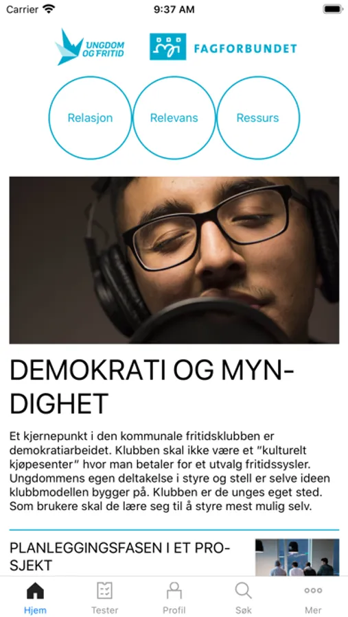 Ungdom og Fritid har i samarbeid med Fagforbundet utviklet en app for ungdomsarbeidere. Denne appen fungerer som en verktøykasse og som en kompetansebank for deg som jobber i fritidsklubb, ungdomshus og andre åpne møteplasser for barn og ungdom. Her kan du finne informasjon om metodikker og medvirkning, om rutinebeskrivelser og ungdomskunnskap, kurs og konferanser, beredskapsplaner og lovverk. Du kan også teste din klubb. Hvor gode er dere på medvirkning? Hvor gode er dere egentlig på planverk?
