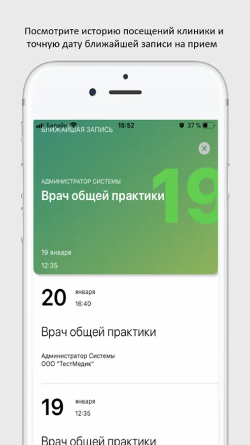 Посмотрите историю посещения клиники, фамилии лечащих врачей, точную дату ближайшей записи на прием