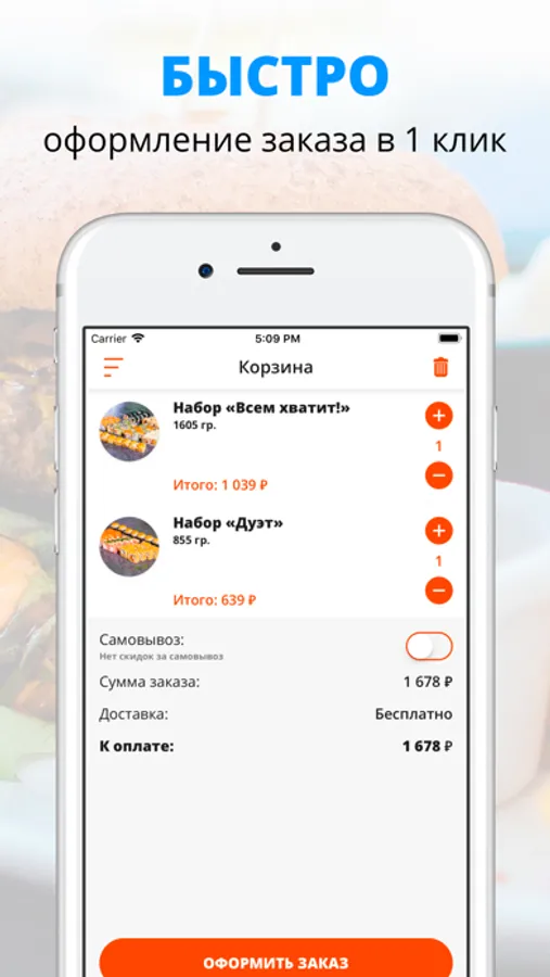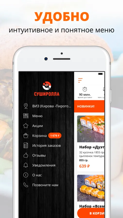 - Отслеживайте статус и время заказа!