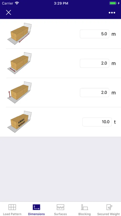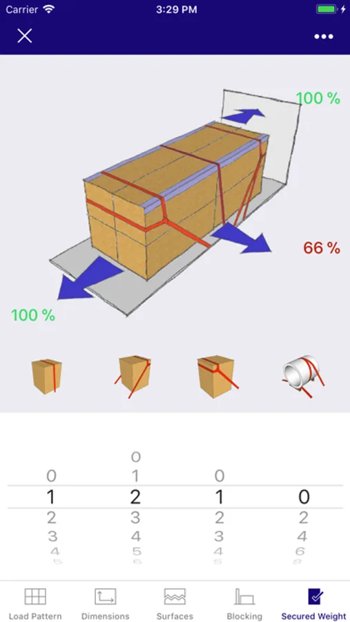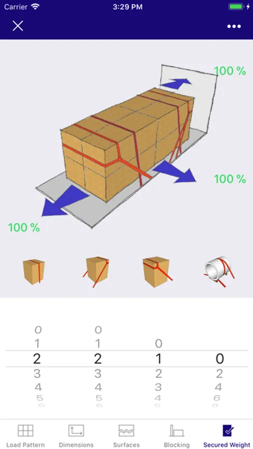 The user may choose between simple entry of data to quickly get an answer to which method to use or advanced settings, which allows for more detailed cargo, lashing and cargo transport unit properties to be entered.