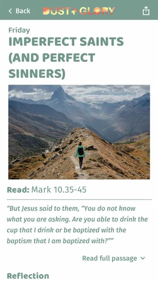 “Dust and Glory encourages us to take a fresh look at the frustrations and failings that every day brings and, rather than pretending we can always avoid them, seek to learn from them and grow closer to God through them.”