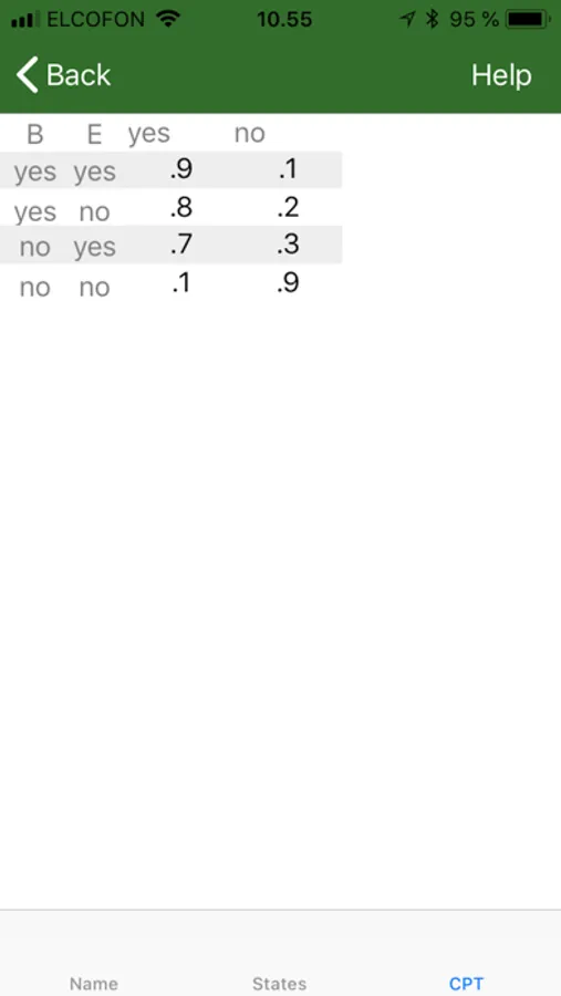 The app can handle models with up to forty nodes each having as many as eight states. Tables can be as large as 128 parameters with a total size of 2048 parameters.