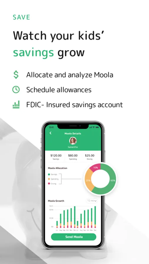 With NuMoola, parents can contribute to kids’ savings, set family goals, and reward kids’ successes. The NuMoola App focuses on family togetherness by encouraging family goal setting and initiating conversations about money management. Parents and kids work together to manage chores and teach kids what to do with the allowance they earn or gifts they receive. Kids’ financial wellness will thrive thanks to the adults around them, who now have a tool to send money as gifts or contribute allowance directly into kids’ FDIC-insured savings accounts.