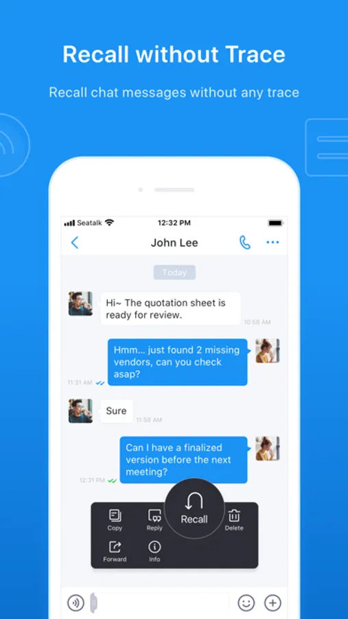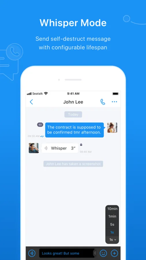[Secure Communication] No messages stored on Server. Protect confidential information with security features including whisper mode, message recall and etc.