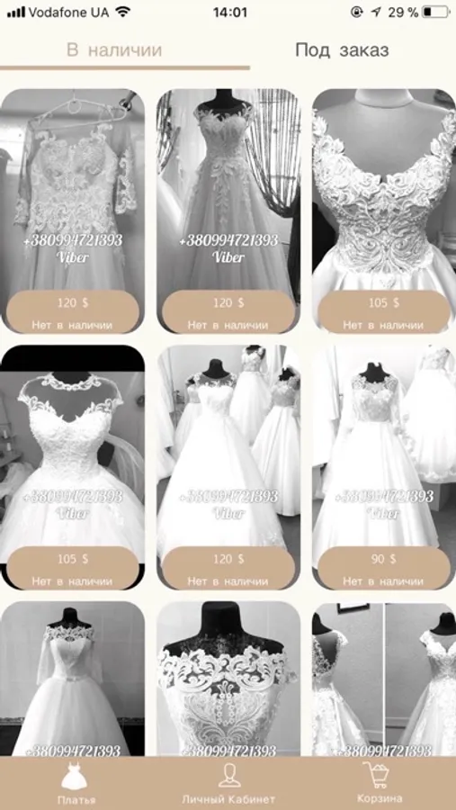 - Просмотр платьев