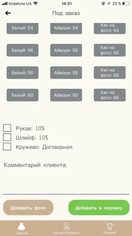 - Заказ платьев