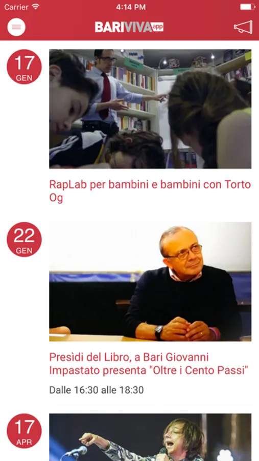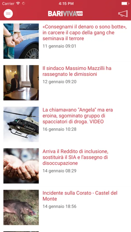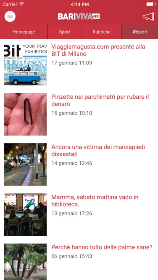 Notizie, video foto ed eventi di Bari sulla nuova App di BariViva. Con lo strumento integrato è possibile inviare segnalazioni fotografiche in mobilità. Inoltre: contenuti iReport, previsioni meteo a Corato, i contenuti più letti.