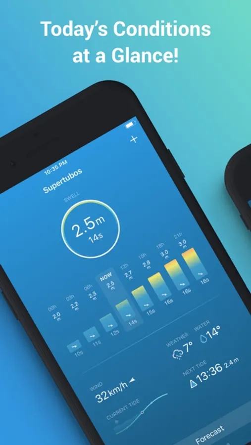 Quickly check today’s conditions at a glance, for all your spots: