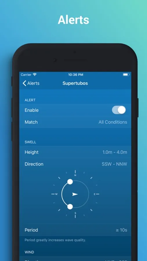 Define spot alerts and be notified when the surf conditions are epic!