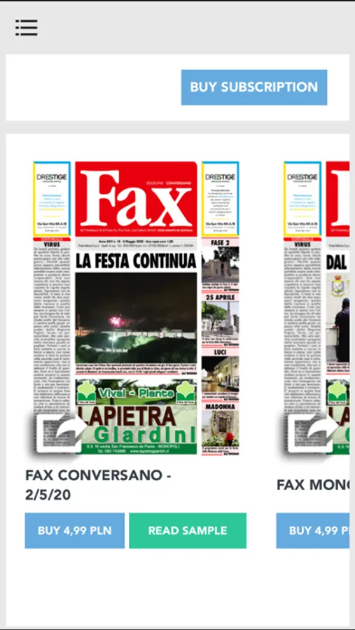 Il settimanale Fax nasce nel 1996, sotto la direzione di Vincenzo Magistà. Attualmente è pubblicato in nove edizioni locali nei comuni del sud-est barese quali Conversano, Putignano, Noci, Turi, Castellana Grotte, Monopoli, Polignano a Mare, Mola di Bari, Gioia del Colle. Da oltre vent'anni è un indispensabile punto di riferimento nel mondo dell'informazione pugliese.