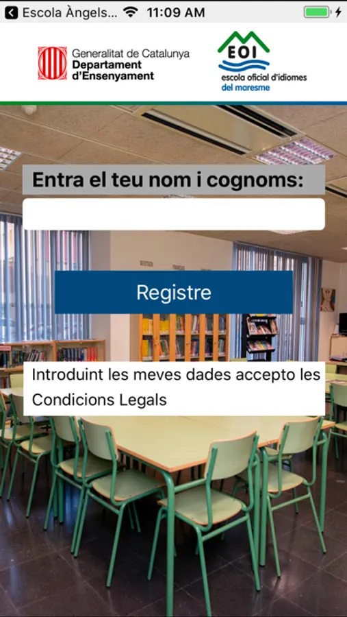 App de l'Escola Oficial d'Idiomes del Maresme. L'aplicació permet una comunicació directa entre el centre i els alumnes/pares dels alumnes. Consta d'una primera pantalla de registre on s'identifica l'usuari. A continuació apareix un menú amb diverses opcions: secció de comunicats enviats per l'escola -ja siguin comunicats generals o personalitzats, secretaria, agenda d'esdeveniments, web de l'escola, accés a la intranet i formulari d'enviament de consultes.
