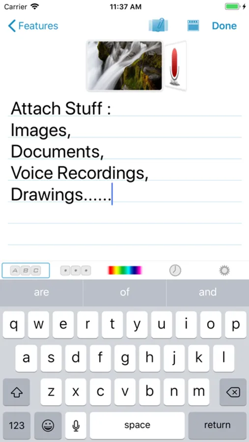 • Powerful note editing keyboard with quick access to Custom Keyboard, Highlighting.