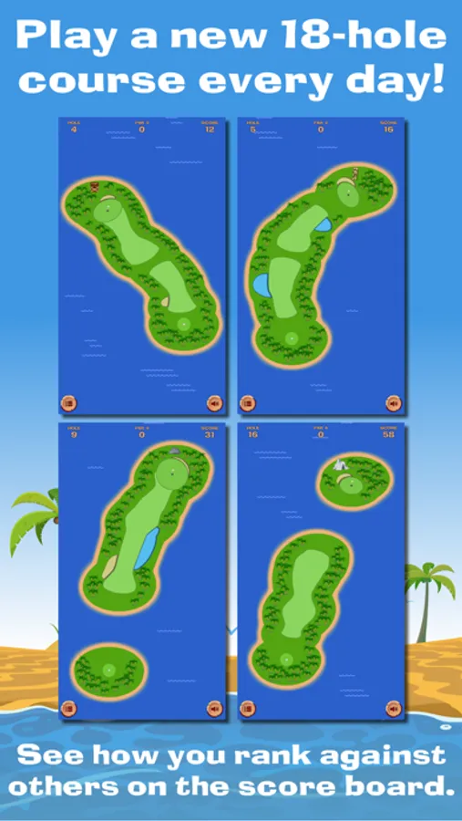 Every day a new course appears. See if you can beat par on each hole, and how low you can score through all 18. If you do well, you may even make the high score board for that day. If not, there's always tomorrow.