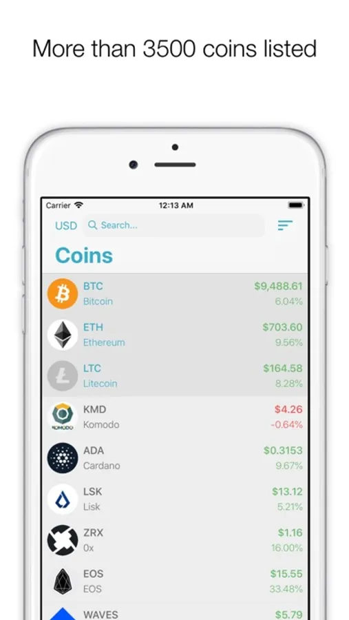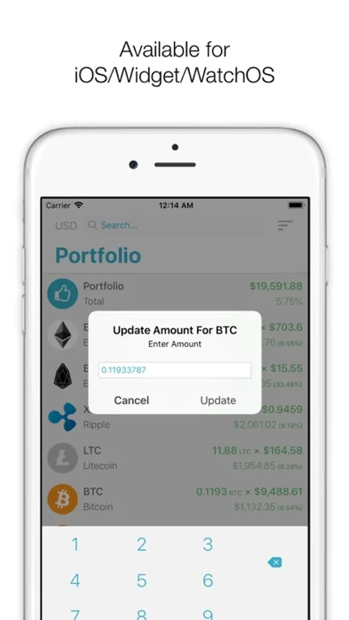 • Show prices in BTC, ETH, LTC, Satoshi, USD, EUR and additional currency picked from settings
