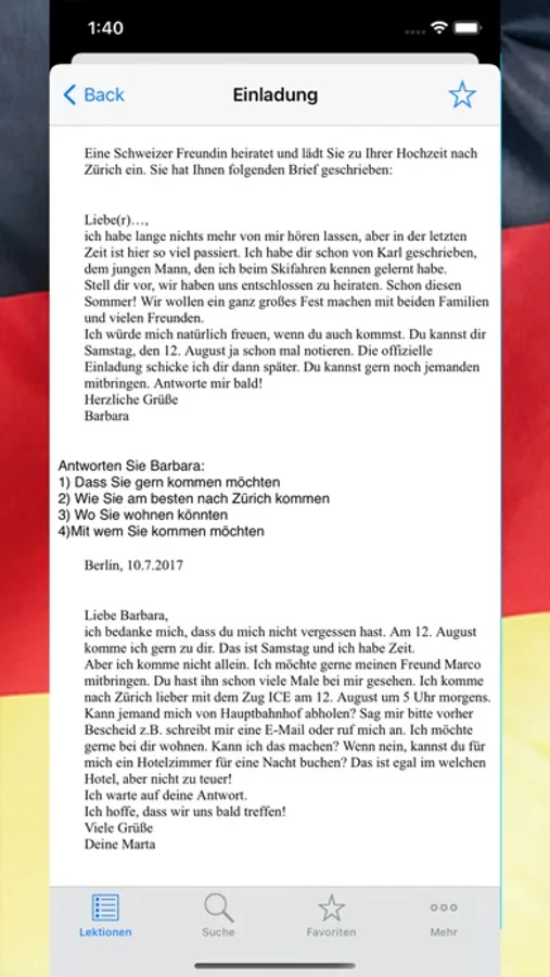 sie können auch mit dieser app jeder Deutsch lernen niveau A1 A2 B1 B2. Sie schreiben einen brief einfach und richtig mit dieser app schreiben zur Prüfung Zertifikat Deutsch A1