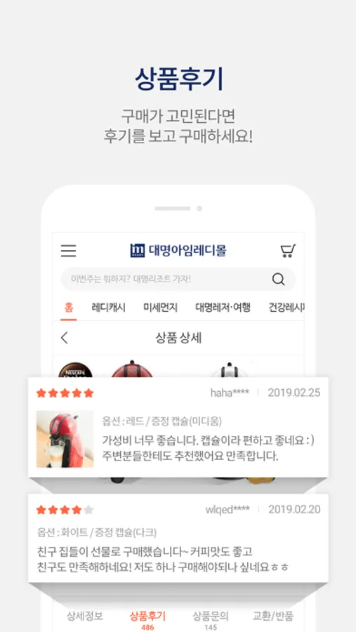 아임레디몰은 여행, 리빙, 건강, 뷰티, 유아, 교육 등 다양한 상품과 서비스를 언제 어디서나 합리적인 가격으로 이용하실 수 있는 대명아임레디 회원 전용 쇼핑몰입니다.