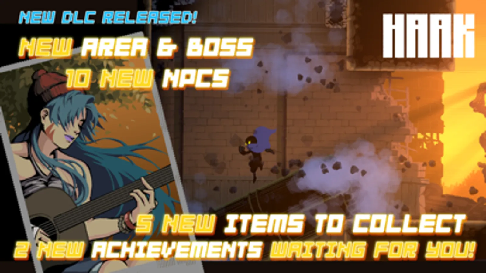 • Haak is an explorative game combining action-platformer gameplay with Metroidvania.