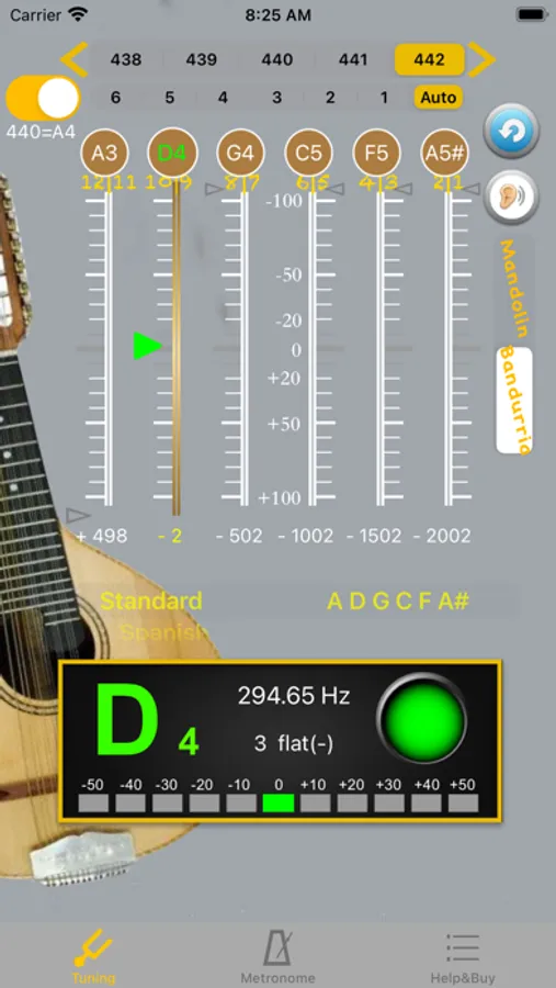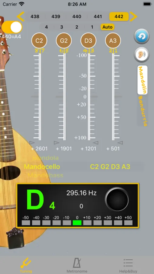 - A4 Frequency adjustment: choose 428~452 frequencies for A4 string.