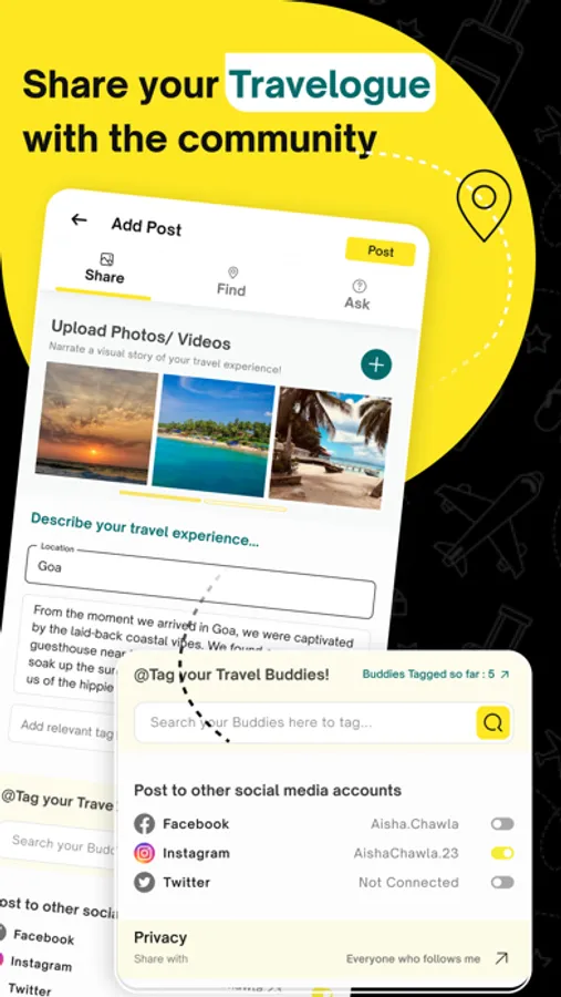 Whether you are traveling solo, backpacking taking a vacation with family & friends or going on an official trip, this one-of-a-kind social networking app will let you build your own community, arrange local meetup groups, find like-minded travel groups, and even become a travel content creator & travel influencer.