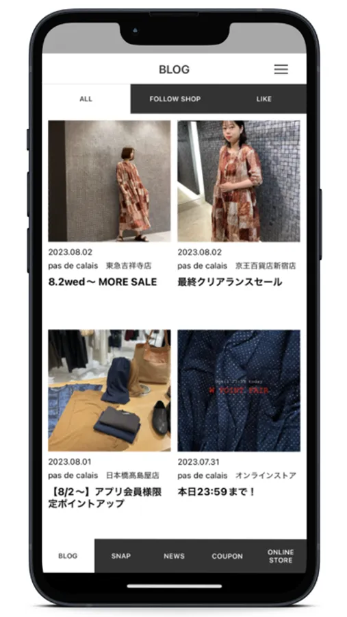 アプリからpas de calaisの公式オンラインストアへ簡単にアクセス。気になった商品がすぐにお求めいただけます。