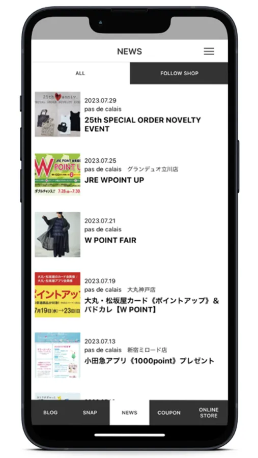 お好きなショップを「フォロー」していただくと、スタッフによる最新のスタイリングやイベント情報、商品の入荷状況などがいち早くご覧いただけます。