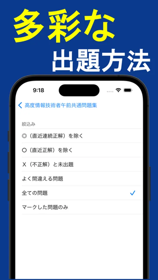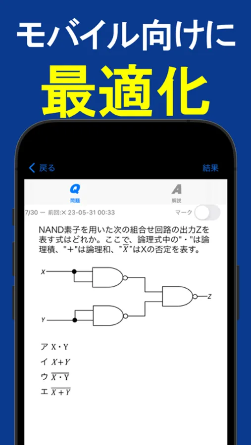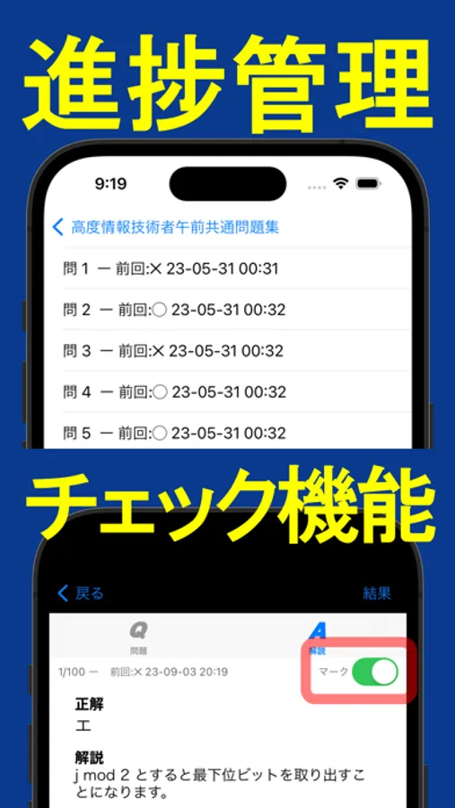 ● 問題のマーク機能はもちろん、理解度を確実にするために2回連続正解◎を除いて出題する機能を用意。 全て◎になるまで頑張りましょう!