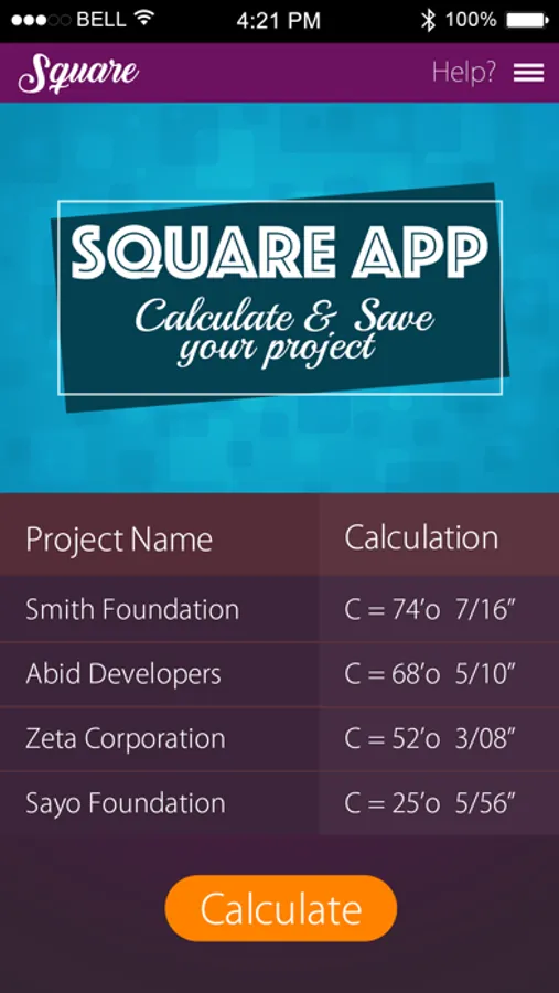The Square App allows you to store up to 3 different Project Calculations to be reviewed at a later time if needed.