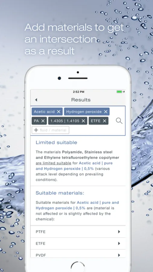 The Bürkert resistApp includes 454 fluids as well as the following materials: