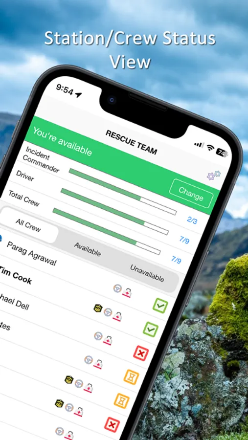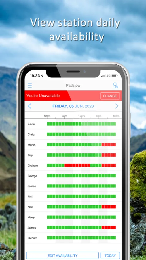 The availability is instantly updated across all other team members phones so it's easy to see at any time who is available should the team have a call-out.
