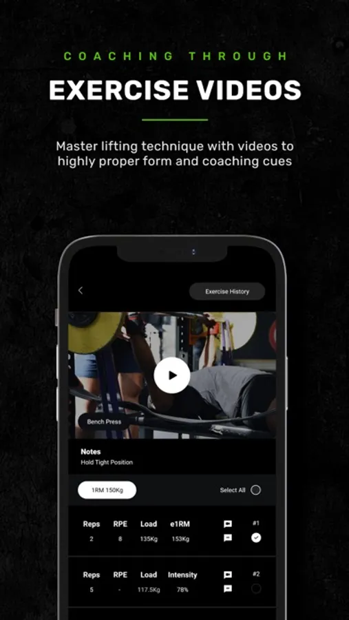 - Know exactly what weight to put on the bar for optimal training (%1RM / RPE)