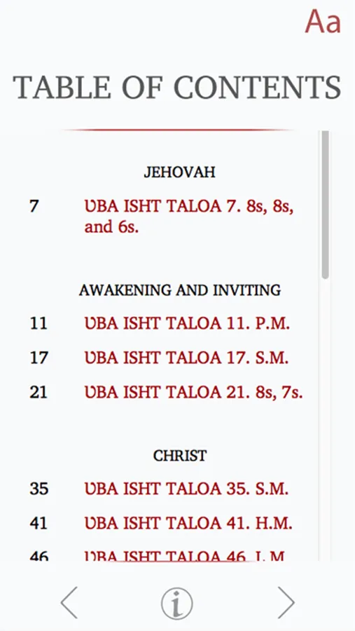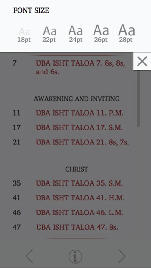 The Choctaw Hymns App offers a selection of popular Choctaw hymns from the print version of the Choctaw Hymn Book. It features adjustable font sizes and an easy-to-navigate table of contents menu.
