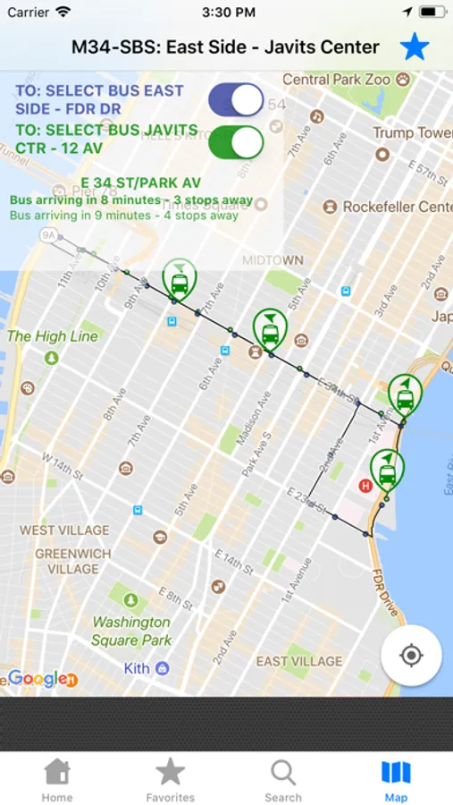 - You can select an MTA bus route and view where the buses are live on a map