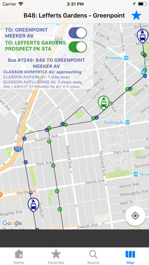 Know where every single MTA bus is this very instant! This Live NYC MTA Bus App will show you where every bus on a selected route is currently located, where they are going, and when they will get there.
