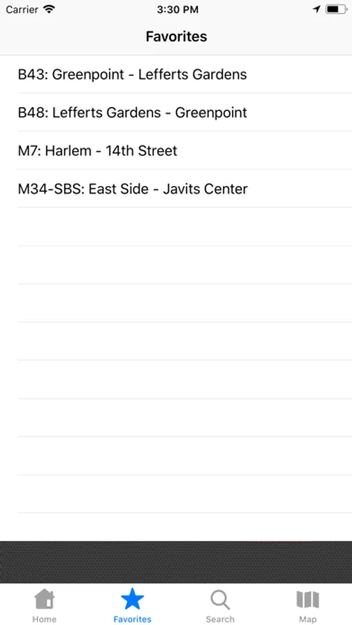 - You can save your favorite routes to the favorites list that is easily accessible via the app menu