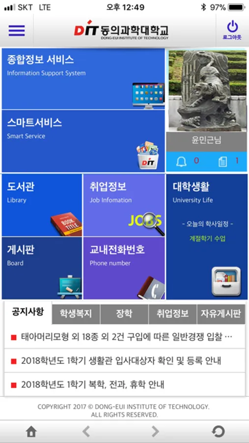 동의과학대학교에서 제작하여 배포하는 공식 앱으로 대학정보, 공지사항, 학사행정 등 다양한 서비스를 제공합니다.
