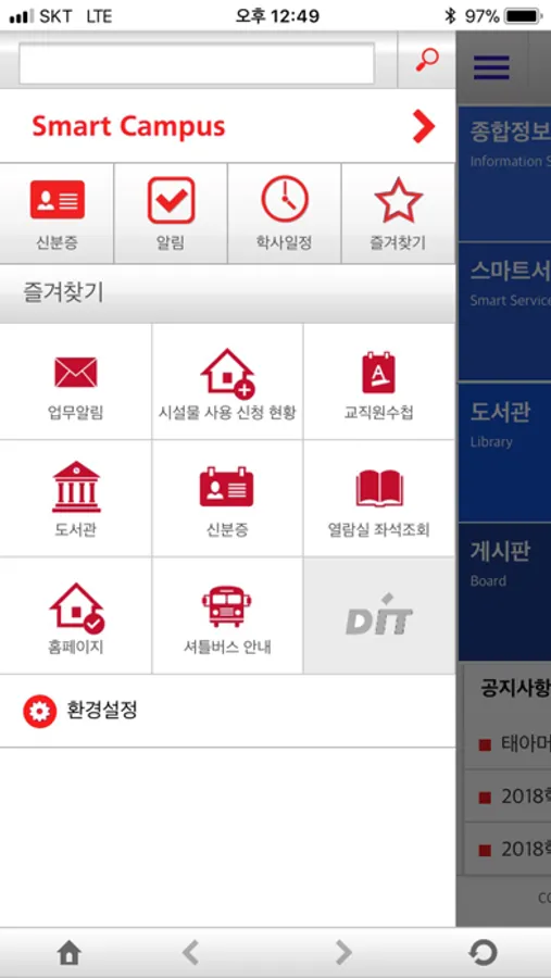 - 스마트서비스: 버스도착정보,캠퍼스맵,셔틀버스안내,식단안내등