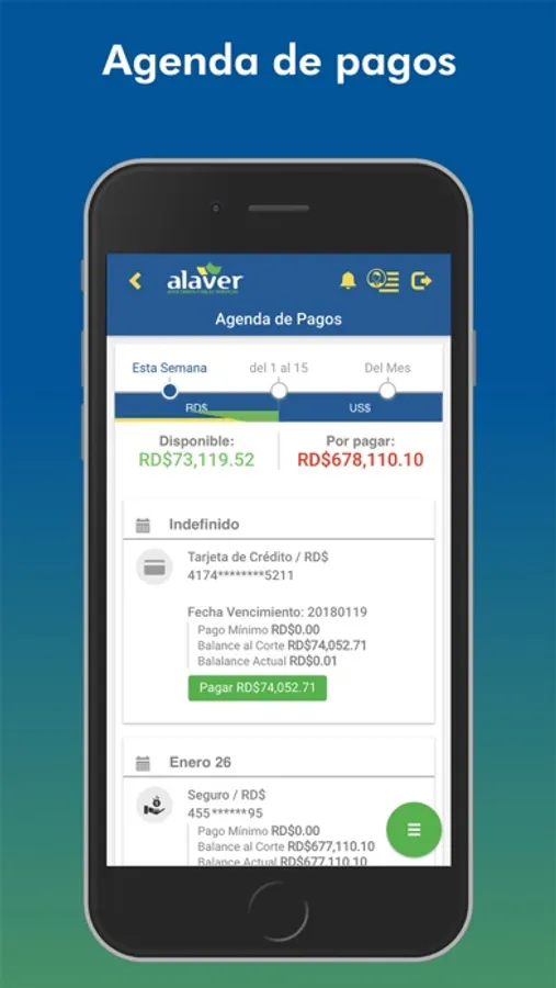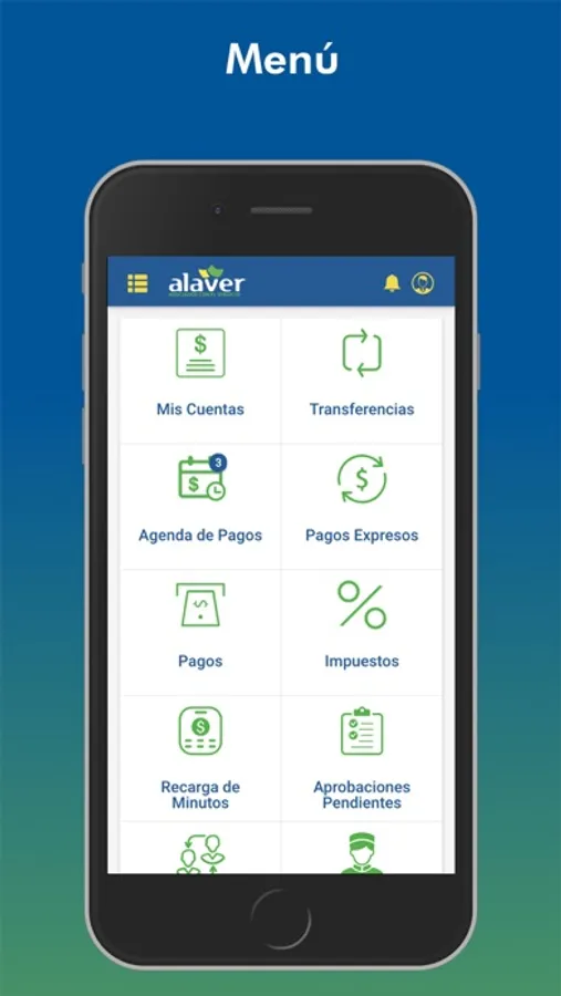 · Consulta el balance de todos tus productos, realiza pagos a tarjetas de créditos y préstamos, haz transferencias entre tus productos de ALAVER y hacia otras instituciones financieras.