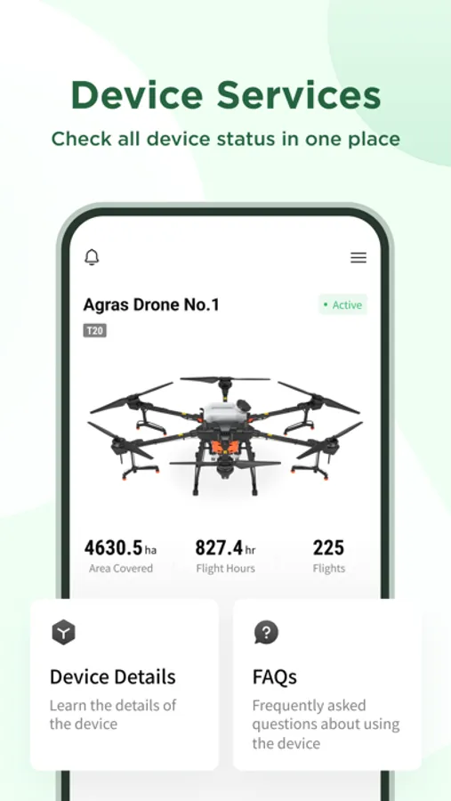 With the app, you can view clearer data on your Agras aircraft while controlling and managing your device with superior ease and efficiency.