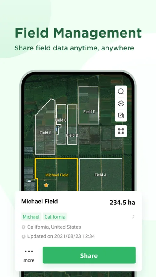 The DJI SmartFarm App offers diverse, practical functions such as data display, device management, field sharing and management, teamwork and measurement tools, to provide end-to-end service support for your spraying and spreading operations.