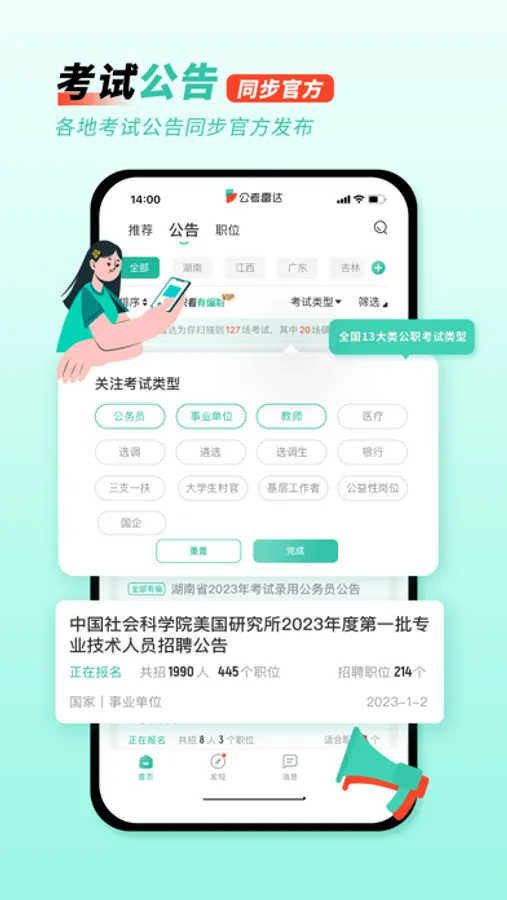 3-定制化提醒:人性化职位定制和动态一对一提醒,轻松掌握每场考试动态,不用苦守考试网,及时查收考试信息