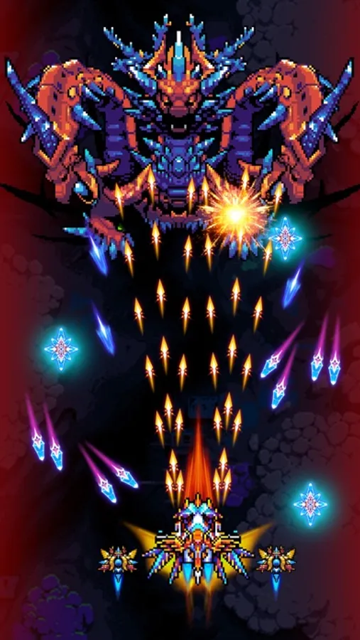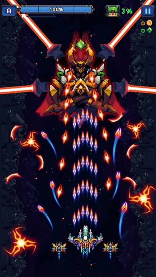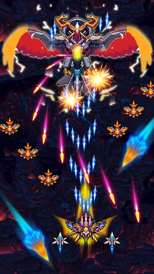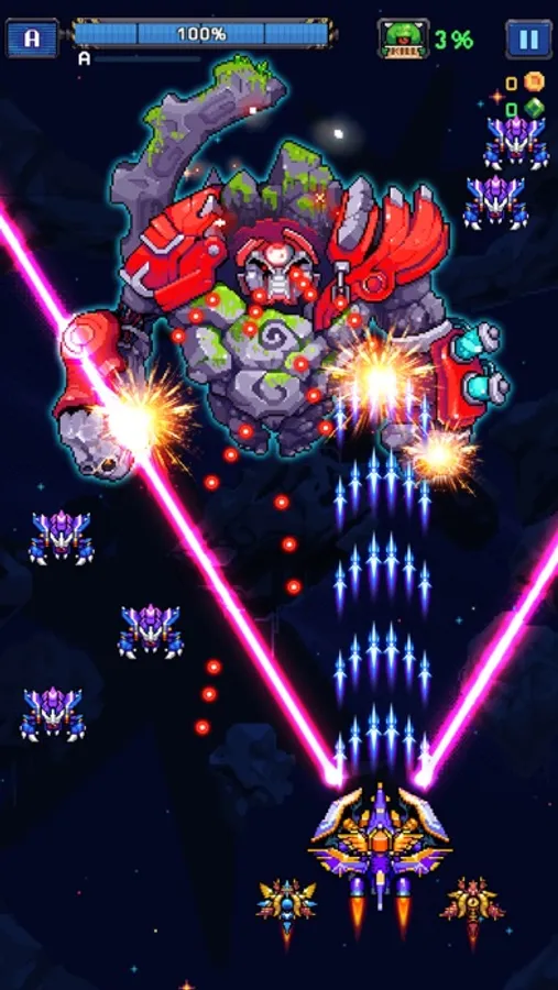 The gorgeous Pixel graphic reminds old school games like Galaga and Galaxian.