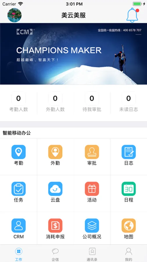 美云美服移动办公APP是通过移动化、可视化、智能化的技术手段,融合内部移动办公、CRM等多功能的综合信息化系统。