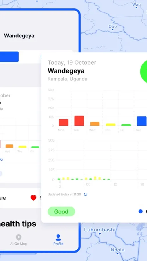 AirQo is based in Africa and currently displays data from 5 countries including;